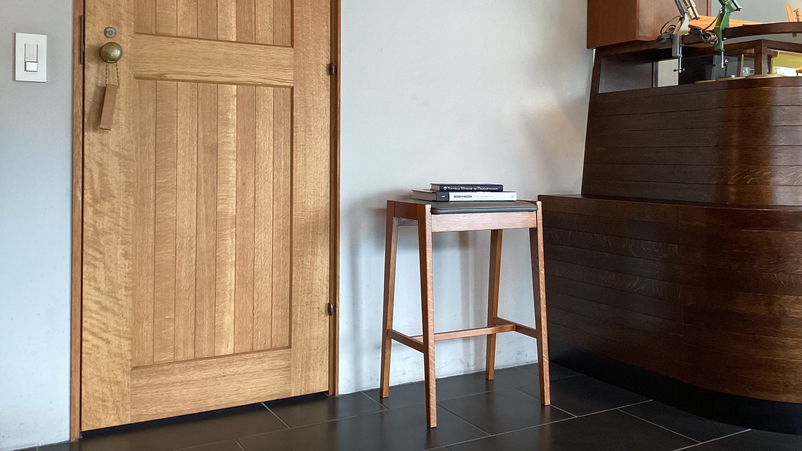 ビニールレザーの座面はお手入れも簡単ですし、汚れを拭きやすいのでキッチン内や洗面室などタフな場所でもお使いいただけます。細かなスレやキズはありますが使えばすぐにつく程度ですので、気になる範囲ではないかと思います。(山手ショップで展示販売中)